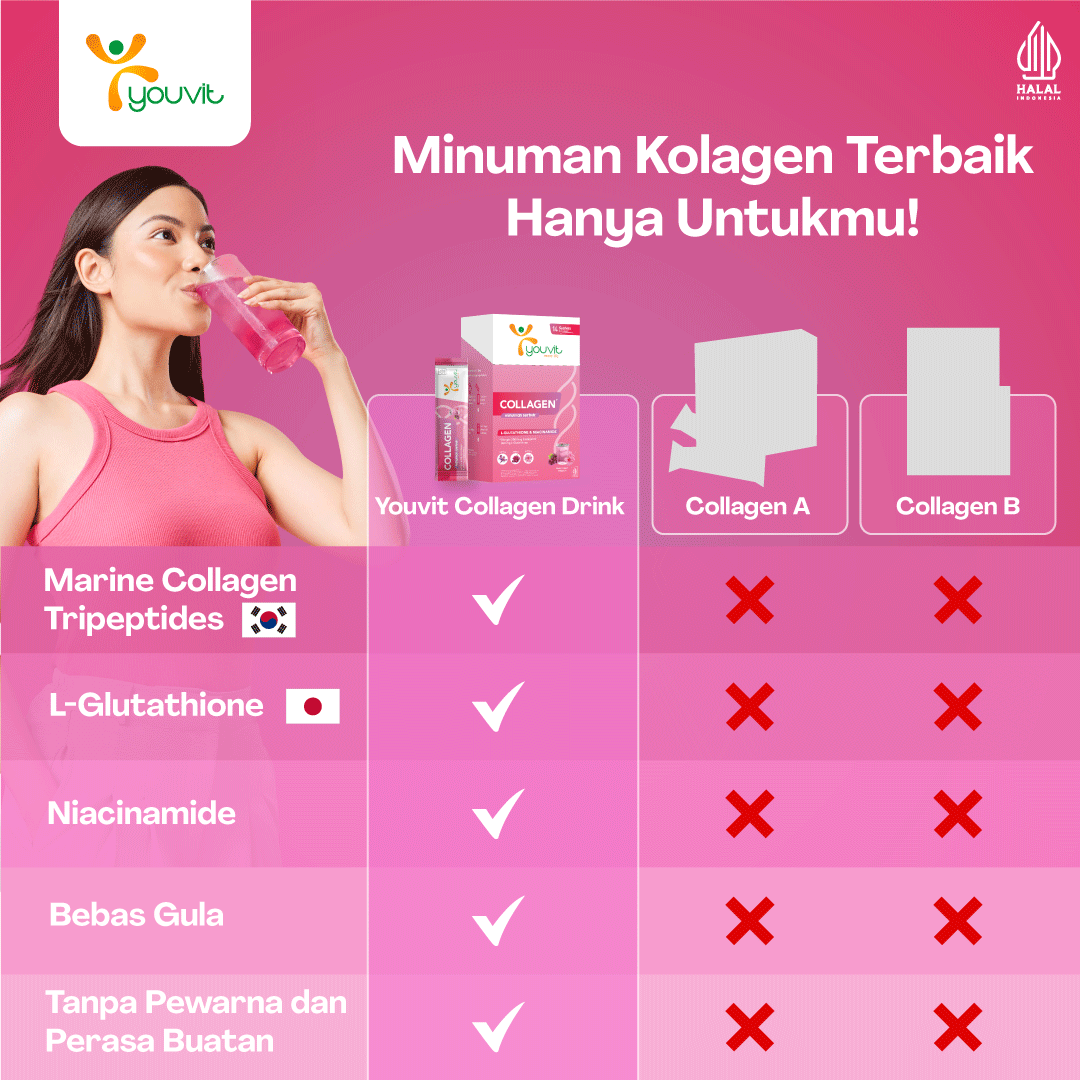 Youvit Collagen Minuman Serbuk dengan L-Glutathione & Niacinamide untuk Anti Aging